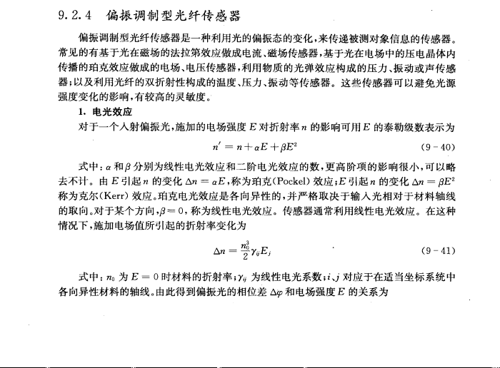| 文摘: 9.2.4偏振調(diào)制型光纖傳感器 偏振調(diào)制型光纖傳感器是一種利用光的偏振態(tài)的變化,來傳遞被測對象 |